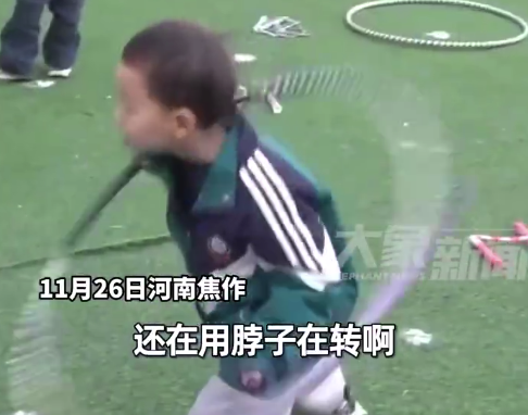 11月26日,河南焦作。轮胎上跳绳,双手摇呼啦圈,河南一幼儿园变“杂技班”。园长姬晨亮称,托费每月720元,每天餐费12元,有外地家长租房子来陪孩子上学。