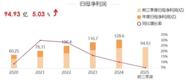 三季报显示,截至2025年9月末,成都银行前三季度实现营业收入177.61亿元,同比增长3.01%;实现归母净利润94.93亿元,同比增长5.03%。