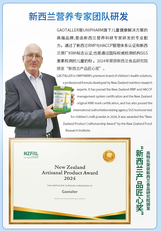 正值此际,源自新西兰的高端营养品牌高特乐(Gaotaller)进入了我们的视野。其背靠拥有超过40年营养食品研发生产经验的新西兰联合制药,承载着将严谨科研与纯净天然相结合的理念,通过以新西兰林肯大学博士为首的专家团队研发的高端配方,直击身高促进与健康发育的核心诉求,为中国市场提供了一套系统性的成长解决方案。