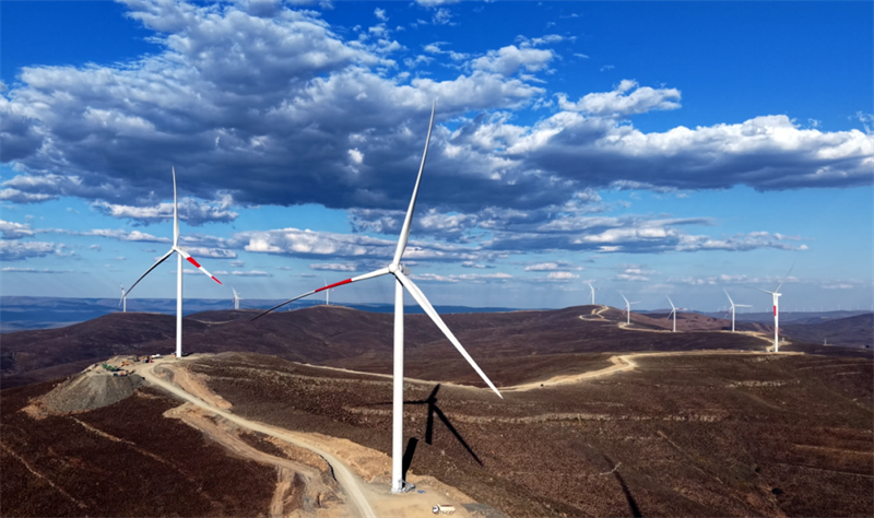 南非奥亚混合能源工程风力发电机。中国水利水电第十一工程局有限公司供图