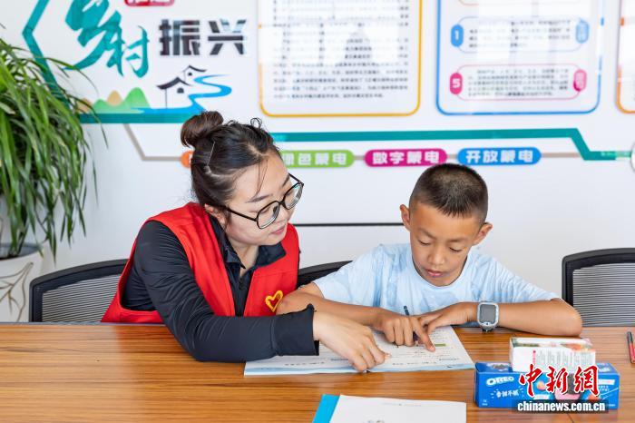 (资料图)图为志愿者在“蒙电学堂”为嘎查孩子辅导功课。王佳佳 摄