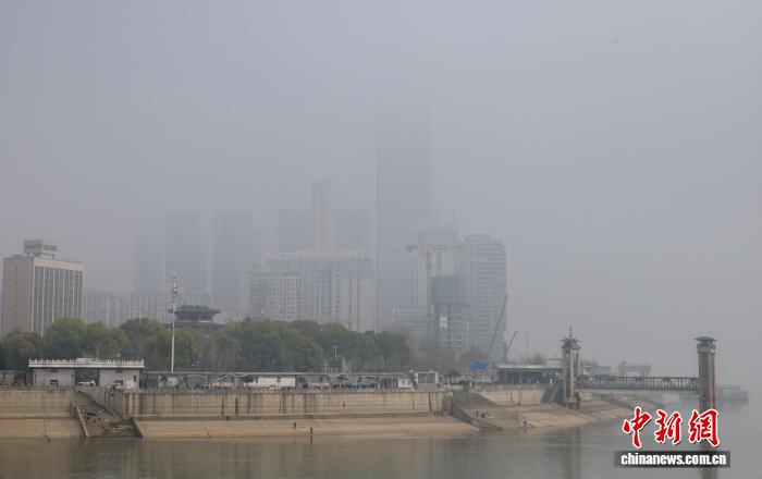 图为从汉阳南岸嘴公园望去,江对岸的高楼笼罩在雾气中。中新社记者 张畅 摄