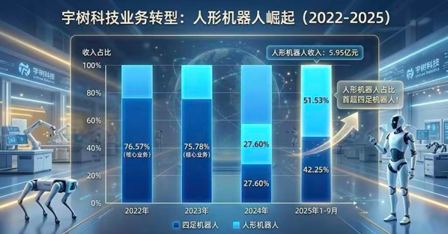 从产品结构来看,宇树科技形成了四足机器人与人形机器人并行的“双引擎”格局。四足机器人作为起家产品,报告期内累计销量超过3万台,全球市场份额连续多年位居第一。2025年,创始人王兴兴公开确认四足机器人市场占有率约为60%,年出货量达数万台。这条产品线从最初的科研教育场景起步,逐步拓展至商业消费和行业应用,2025年1-9月商业消费已占四足机器人收入的42.30%,完成了从实验室到市场的跨越式发展。