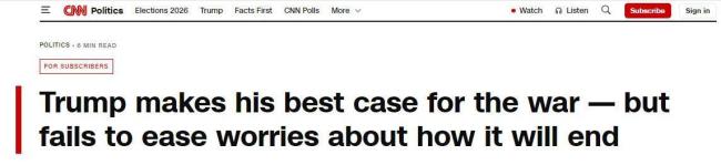 特朗普的讲话并未消除民众对战事走向的担忧。有分析认为,特朗普此番讲话可能旨在高调吹嘘战果、安抚民意,并强调美国不需要通过霍尔木兹海峡进口石油,以稳定市场。然而,讲话内容上的混乱与矛盾暴露出美国在结束对伊朗战事上缺乏切实可行计划。